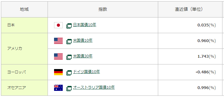 こちらは国債の金利を表した表です。他国の国債よりも金利が高いことがわかります。