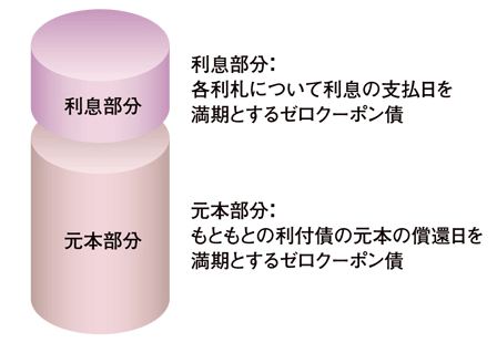 利付債は通常、元本部分とクーポン部分で構成されますが、利付債の元本部分とクーポン(利息)部分が分離され、それぞれの部分がゼロクーポンの割引債として販売される債券を指します。