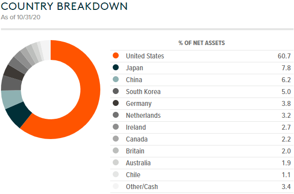 DRIVは75銘柄を保有していて、一般消費財(36.3%)、情報技術(32.7%)、素材(12.8%)が上位3セクターとなっています。